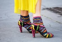 До недавнего времени, сочетание носков и босоножек, шлепок считалось моветоном. (Сразу хочу отметить, в отношении мужчин это так и осталось). Что касаемо женского образа, то в последнее время все больше дизайнеров и стилистов нарушают этот, когда-то строжайший закон. И утверждают, что многие образы только выигрывают от сочетания носков и босоножек, носков и туфель.